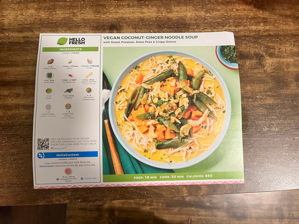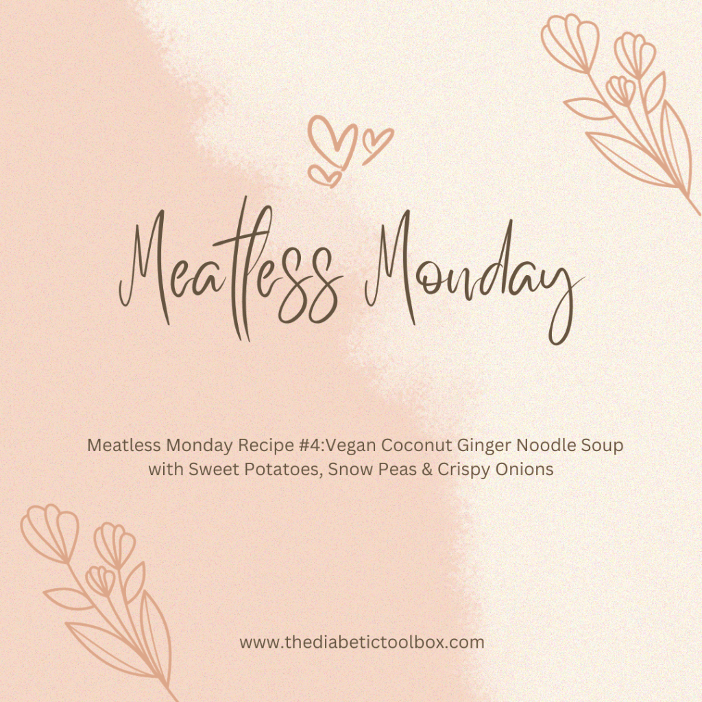 Hello Friends, today’s meatless Monday recipe is a creamy vegan ginger noodle soup with sweet potatoes, snow peas, and crispy onions. This soup has a lot of ingredients; I cooked the snow peas but ate them separately. I could have also left out the sweet potatoes because the ramen noodles were filling, but the sweet potato gave the soup a pretty orange color. You can eat this soup alone or add a lovely green salad and your favorite crusty bread. You can skip the bread if it takes you over your carb allotment for the day It took about 30 minutes to make, and there was plenty for lunch the next day.